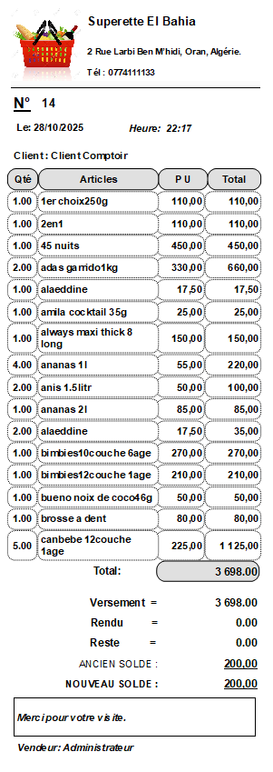 بيع مباشر بطباعة فواتير A4 أو تذكرة كاش